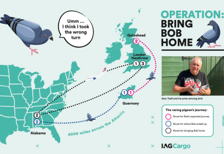 How does a famous racing pigeon from the UK end up on the other side of the world, and what does it take to bring him back?